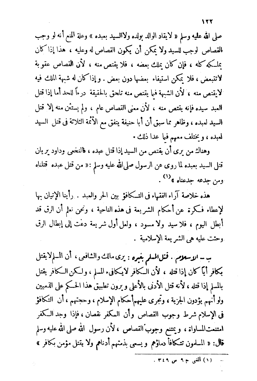 هذه خلاصة آراء الفقهاء فى التكافؤ بين الحر والعبد رأينا الإتيان بها لإعطاء فكرة عن أحكام الشريعة فى هذه الناحية ونحن نعلم أن الرق قد أبطل اليوم، فلا سيد ولا مسود ولعل أول شريعة دعت إلى إبطال الرق وحثت عليه هى الشريعة الإسلامية.