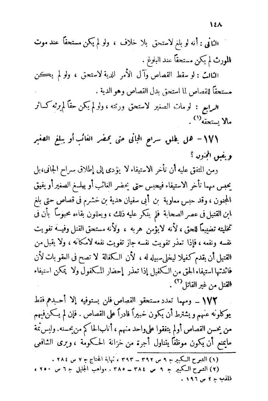 (¬2) الشرح الكبير ج9 ص384 , 385 , مواهب الجليل ج6 ص250 , المهذب ج2 ص196.