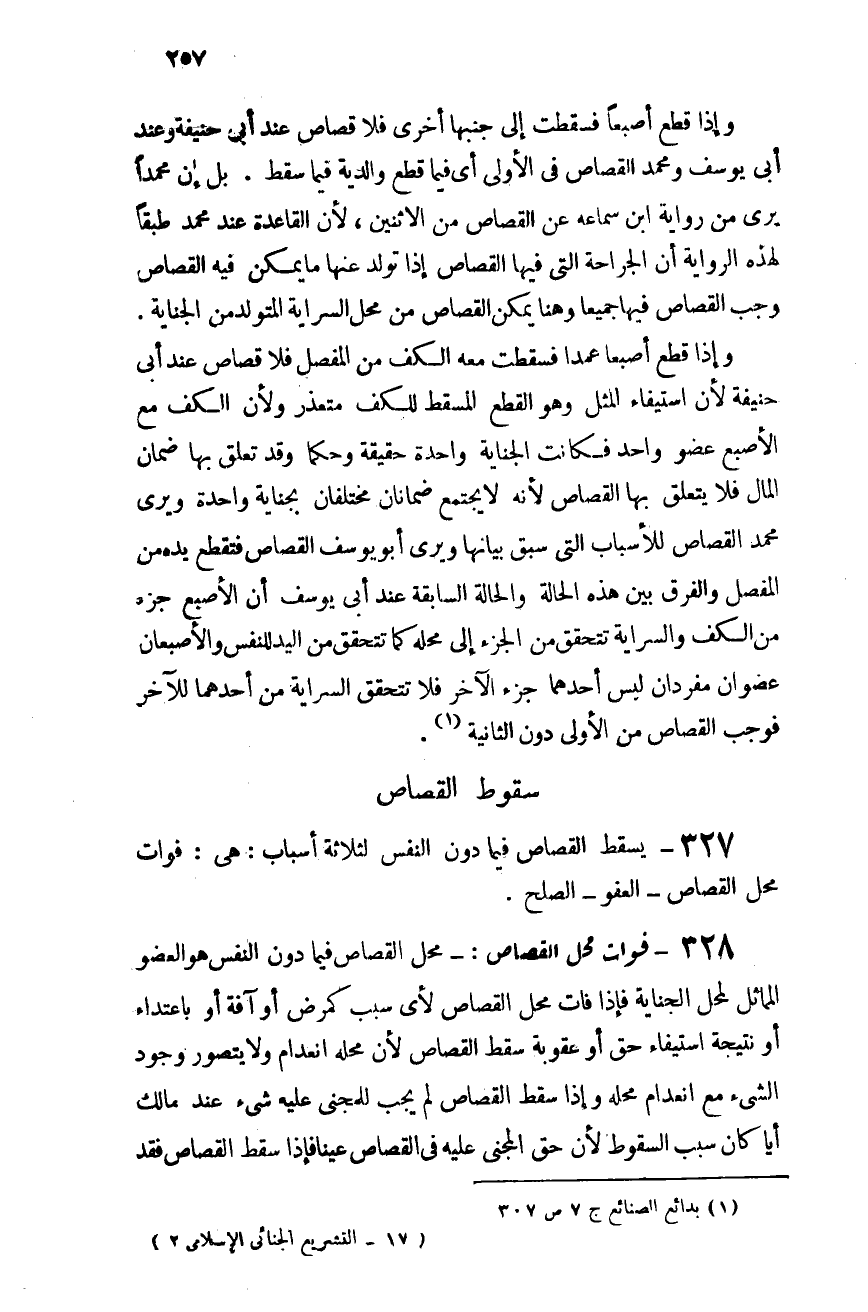 327- يسقط القصاص فيما دون النفس لثلاثة أسباب هى: فوات محل القصاص - العفو - الصلح.