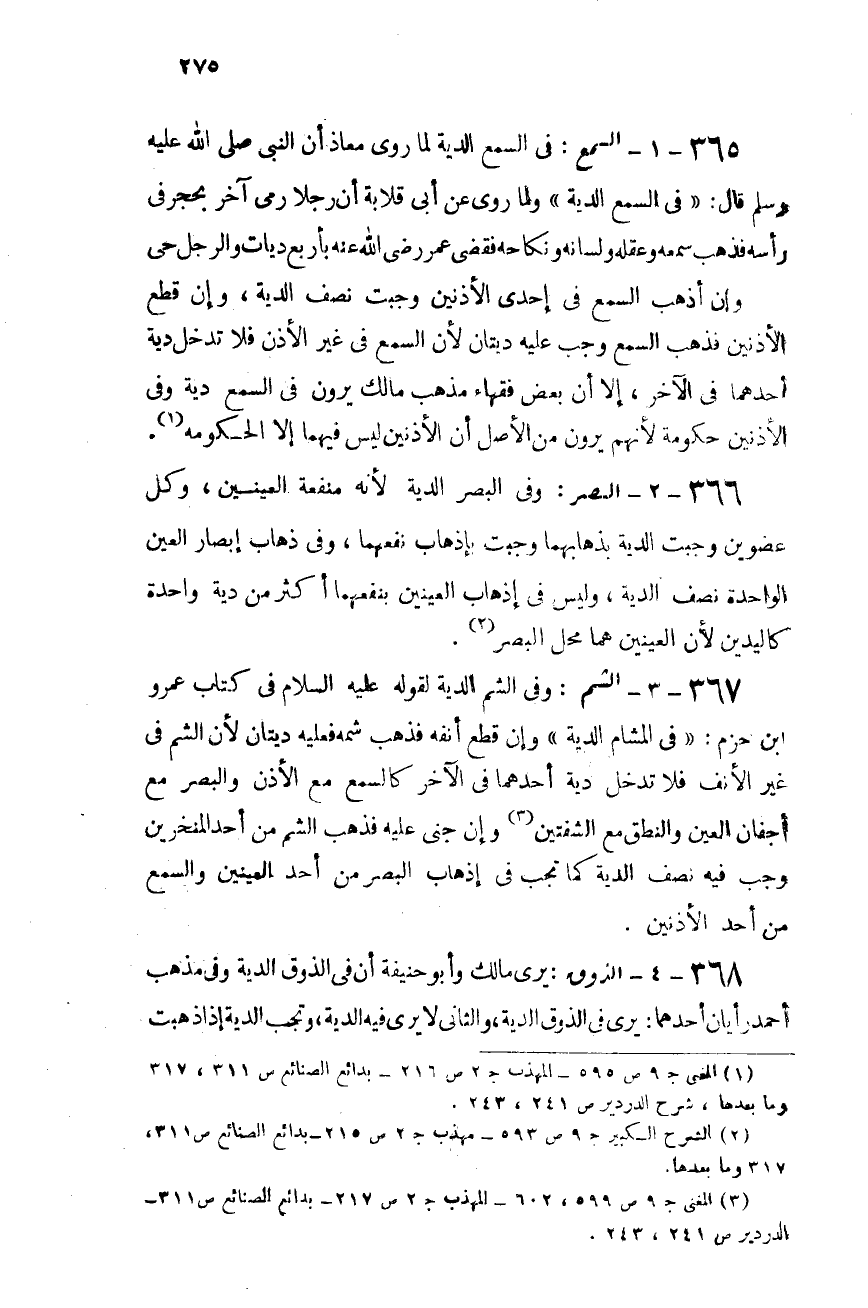 368- (4) الذوق: يرى مالك وأبو حنيفة أن فى الذوق الدية، وفى مذهب أحمد رأيان أحدهما: يرى فى الذوق الدية، والثانى لا يرى فيه الدية، وتجب الدية إذا ذهبت
