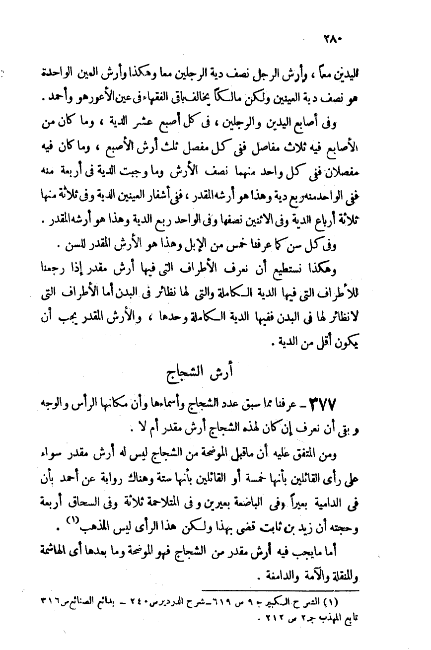 377- عرفنا مما سبق عدد الشجاج وأسماءها وأن مكانها الرأس والوجه، وبقى أن نعرف إن كان لهذه الشجاج أرش مقدر أم لا.