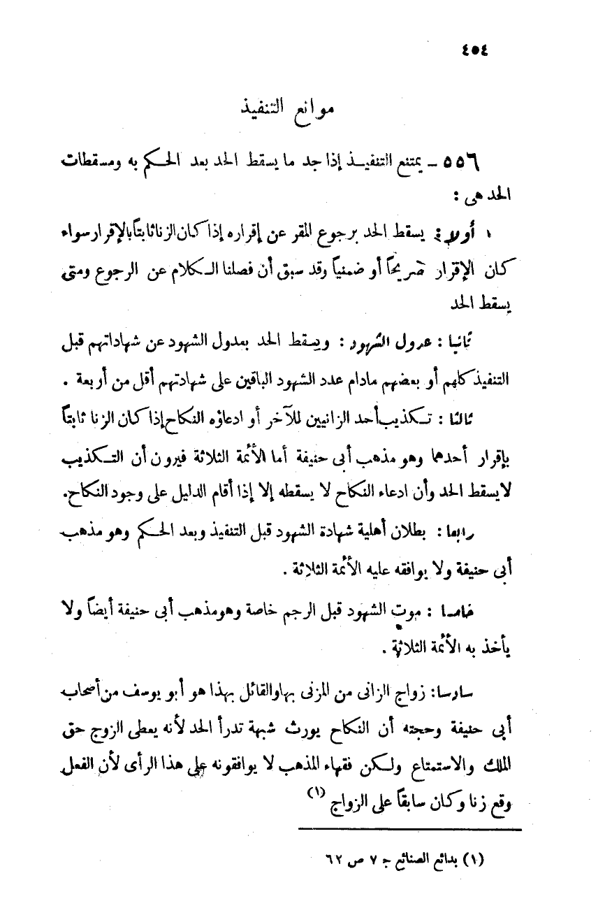 خامسًا: موت الشهود قبل الرجم خاصة، وهو مذهب أبى حنيفة أيضًا ولا يأخذ به الأئمة الثلاثة.
