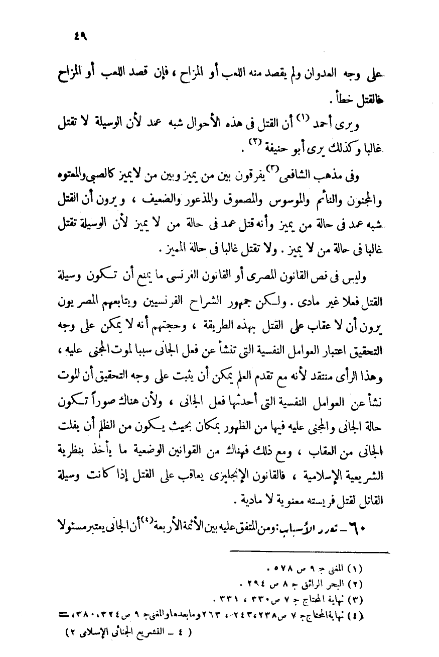 60 - تعدد الأسباب: ومن المتفق عليه بين الأئمة الأربعة (¬4) أن الجانى يعتبر مسئولاً