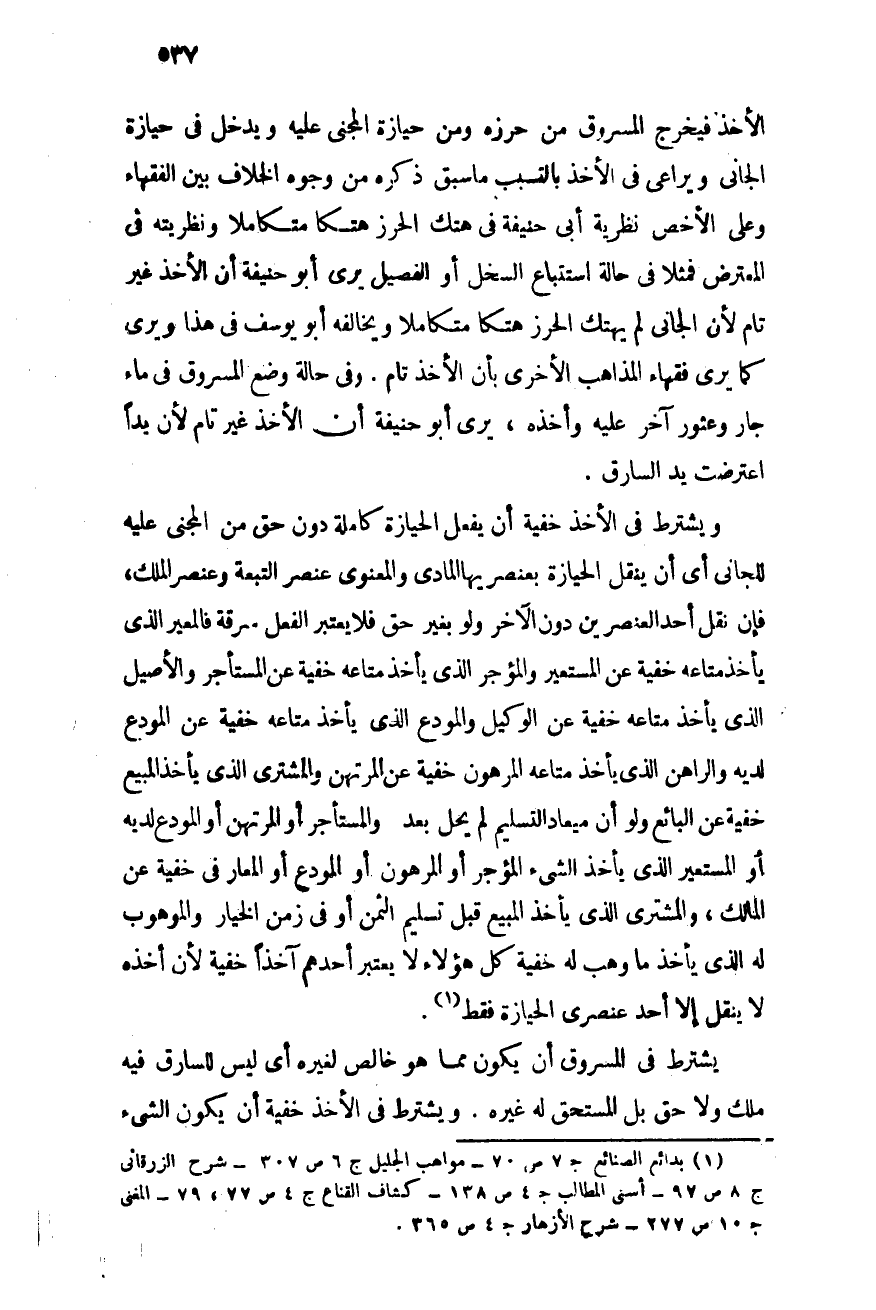ويشترط فى المسروق أن يكون مما هو خالص لغيره أى ليس للسارق فيه ملك ولا حق بل المستحق له غيره. ويشترط فى الأخذ خفية أن يكون الشىء