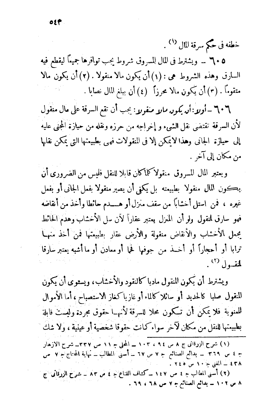 605- ويشترط فى المال المسروق شروط يجب توافرها جميعاً ليقطع فيه السارق, وهذه الشروط هى: