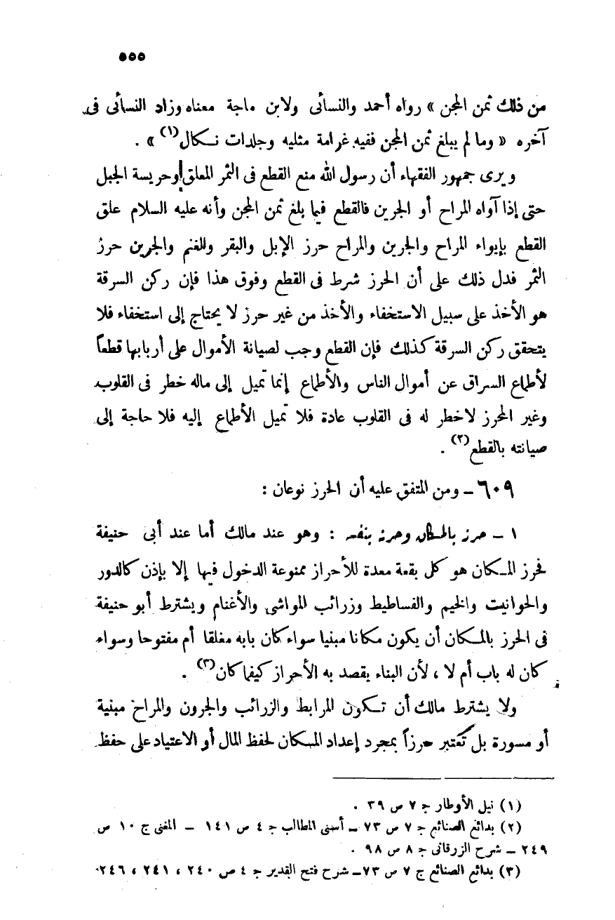 609- ومن المتفق عليه أن الحرز نوعان:
