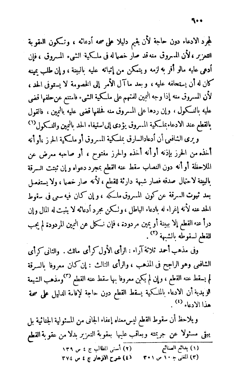 وفى مذهب أحمد ثلاثة أراء: الرأى الأول كرأى مالك, والثانى كرأى الشافعى وهو الراجح فى المذهب, والرأى الثالث: إن كان معروفًا بالسرقة لم يسقط عنه القطع, وإن لم يكن معروفًا بها سقط عنه القطع (¬3) , ومذهب الشيعة الزيدية أن الادعاء بالملكية يسقط القطع دون الحاجة لإقامة الدليل على صحة هذا الادعاء (¬4) .