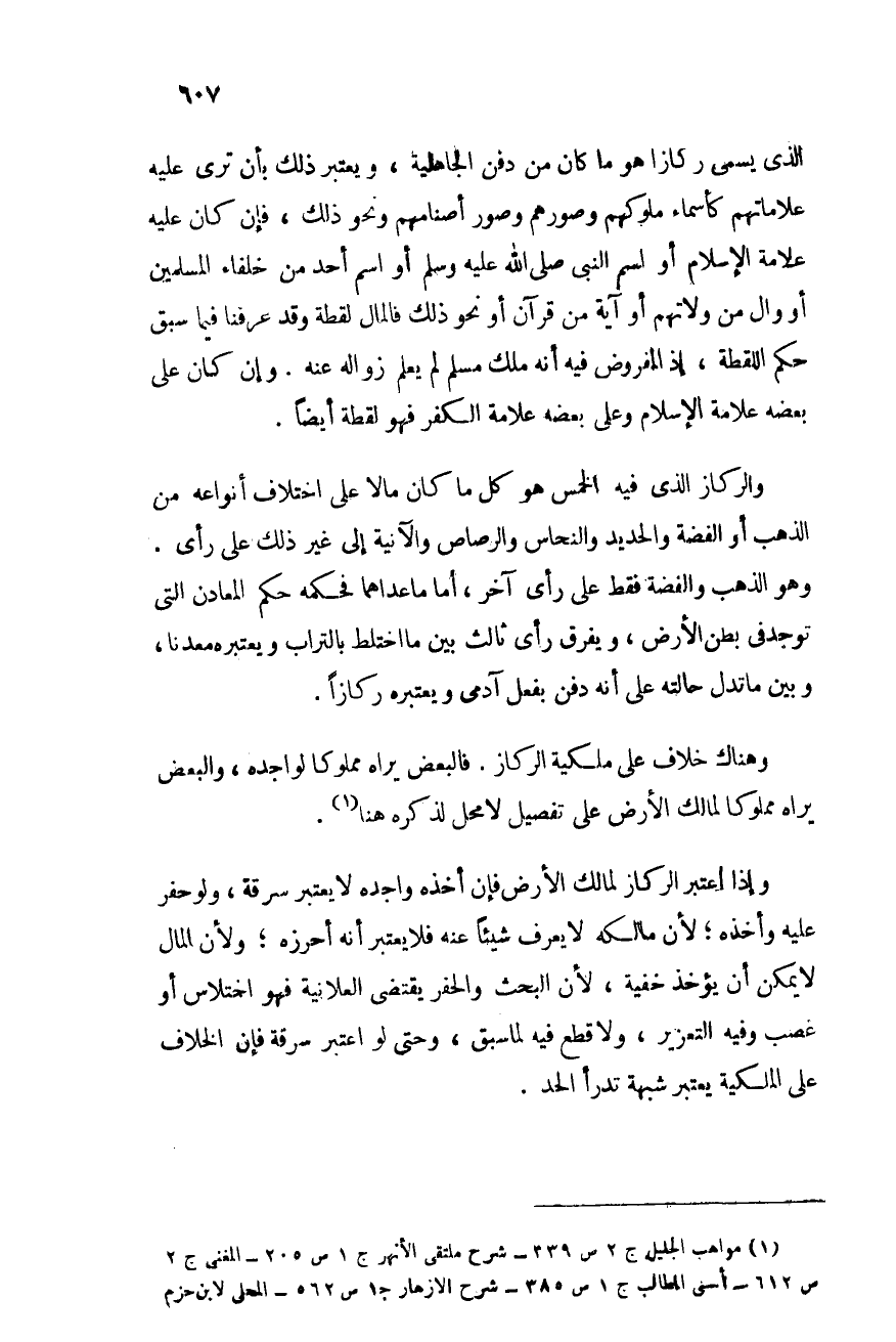 الذى يسمى ركازًا هو ما كان من دفن الجاهلية, ويعتبر ذلك بأن ترى عليه علاماتهم كأسماء ملوكهم وصورهم وصور أصنامهم ونحو ذلك, فإن كان عليه علامة الإسلام أو اسم النبى - صلى الله عليه وسلم - أو اسم أحد من خلفاء المسلمين أو والٍٍ من ولاتهم أو آية من قرآن أو نحو ذلك فالمال لقطة, وقد عرفنا فيما سبق حكم اللقطة. إذ المفروض فيه أنه ملك مسلم لم يعلم زواله عنه. وإن كان على بعضه علامة الإسلام وعلى بعضه علامة الكفر فهو لقطة أيضًا.