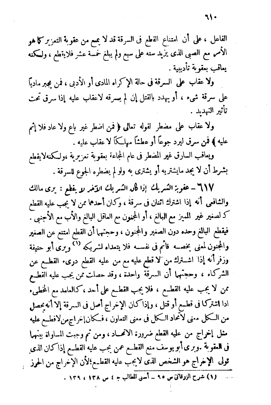 الفاعل, على أن امتناع القطع فى السرقة قد لا يمنع عقوبة التعزير كما هو الأمر مع الصبى الذى يزيد سنه على سبع ولم يبلغ عشر فلا قطع, ولكنه يعاقب بعقوبة تأديبية.