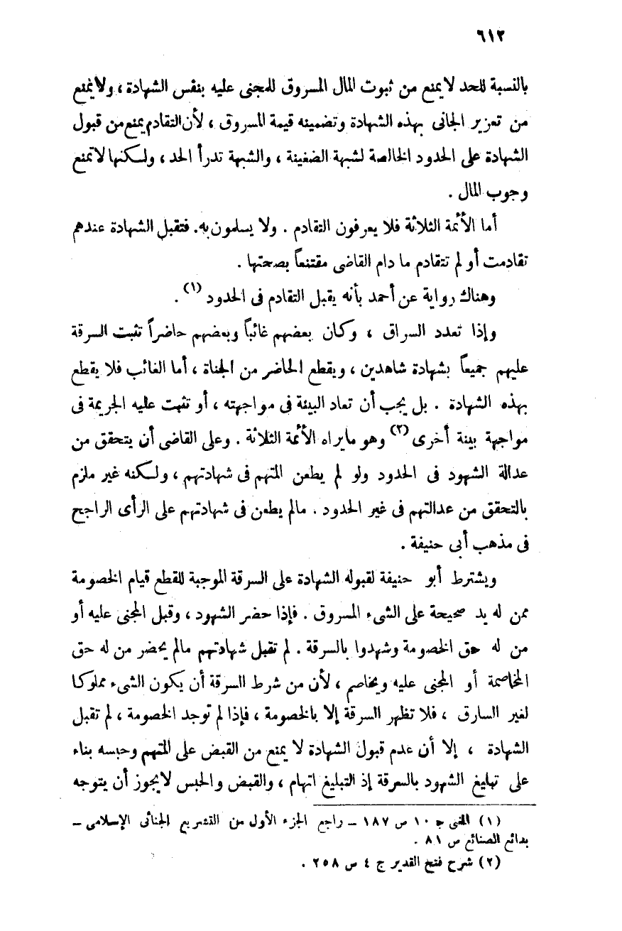 (¬1) المغنى ج10 ص187, بدائع الصنائع ج7 ص81, وراجع الجزء الأول من التشريع الجنائى الإسلامى.