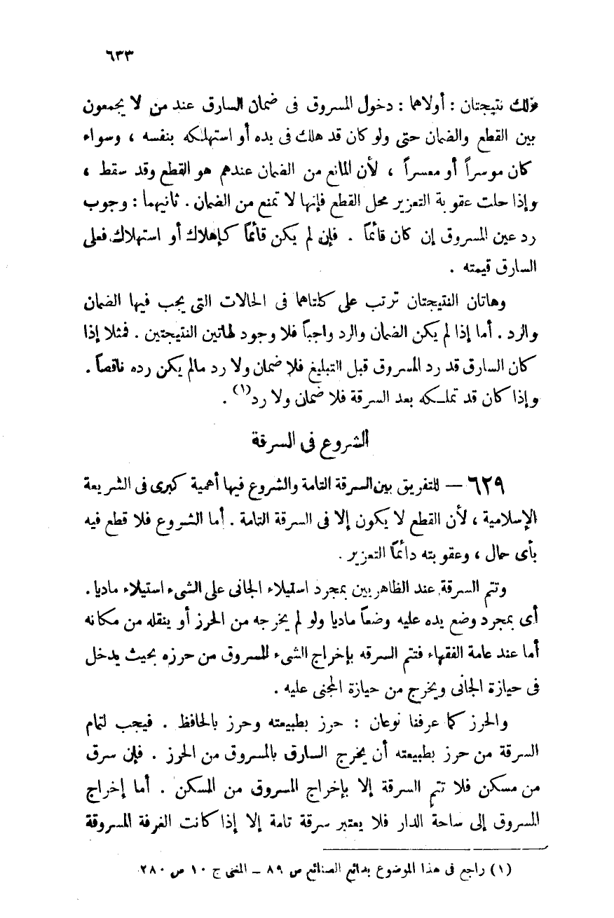 629- للتفريق بين السرقة التامة والشروع فيها أهمية كبرى فى الشريعة الإسلامية؛ لأن القطع لا يكون إلا فى السرقة التامة, أما الشروع فلا قطع فيه بأى حال, وعقوبته دائمًا التعزير.