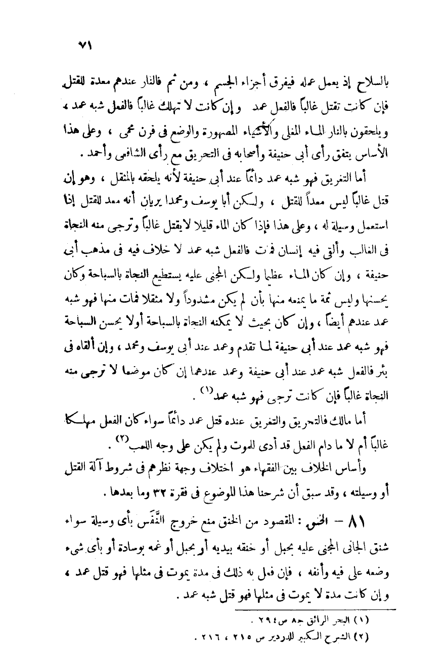 وأساس الخلاف بين الفقهاء هو اختلاف وجهة نظرهم فى شروط آلة القتل أو وسيلته وقد سبق أن شرحنا هذا الموضوع فى فقرة 32 وما بعدها.