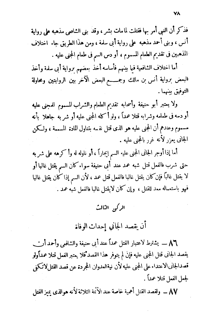 87 - ولقصد القتل أهمية خاصة عند الأئمة الثلاثة: لأنه هو الذى يميز القتل