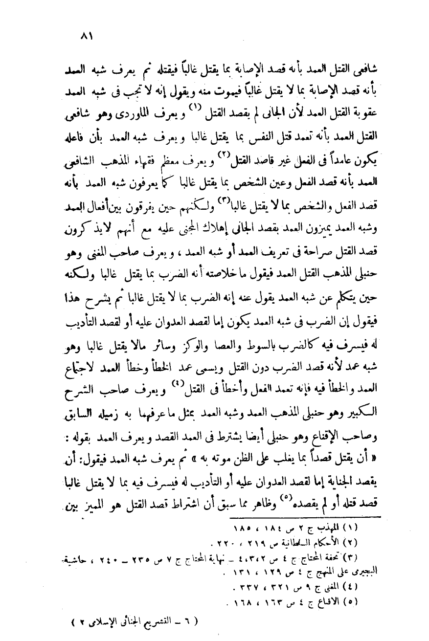 ويعرف الماوردى - وهو شافعى - القتل العمد بأنه تعمد قتل النفس بما يقتل غالبًا. ويعرف شبه العمد بأن فاعله يكون عامدًا فى الفعل غير قاصد القتل (¬2) .