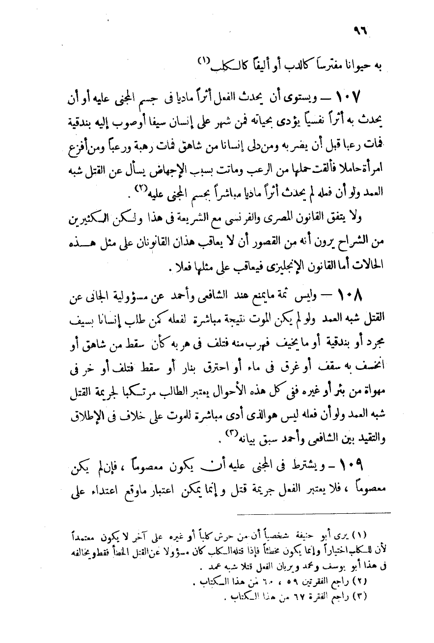 109 - ويشترط فى المجنى عليه أن يكون معصومًا: فإن لم يكن معصومًا فلا يعتبر الفعل جريمة قتل وإنما يمكن اعتبار ما وقع اعتداء على