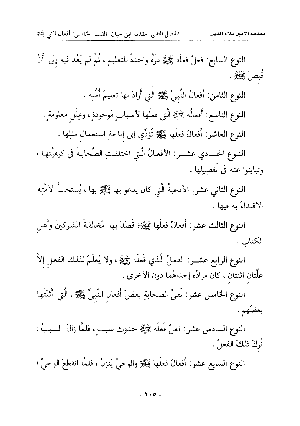 النوع التاسع: أفعاله صلى الله عليه وسلم التي فعلها لأسباب موجودة وعلل معلومة.