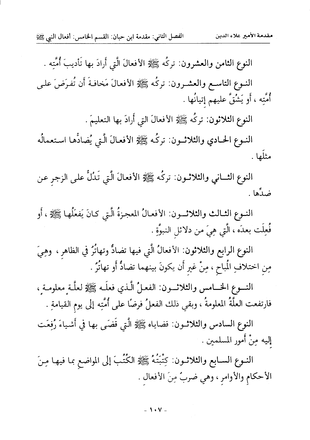 النوع الحادي والثلاثون: تركه صلى الله عليه وسلم الأفعال التي يُضادُّها استعماله مثلها.