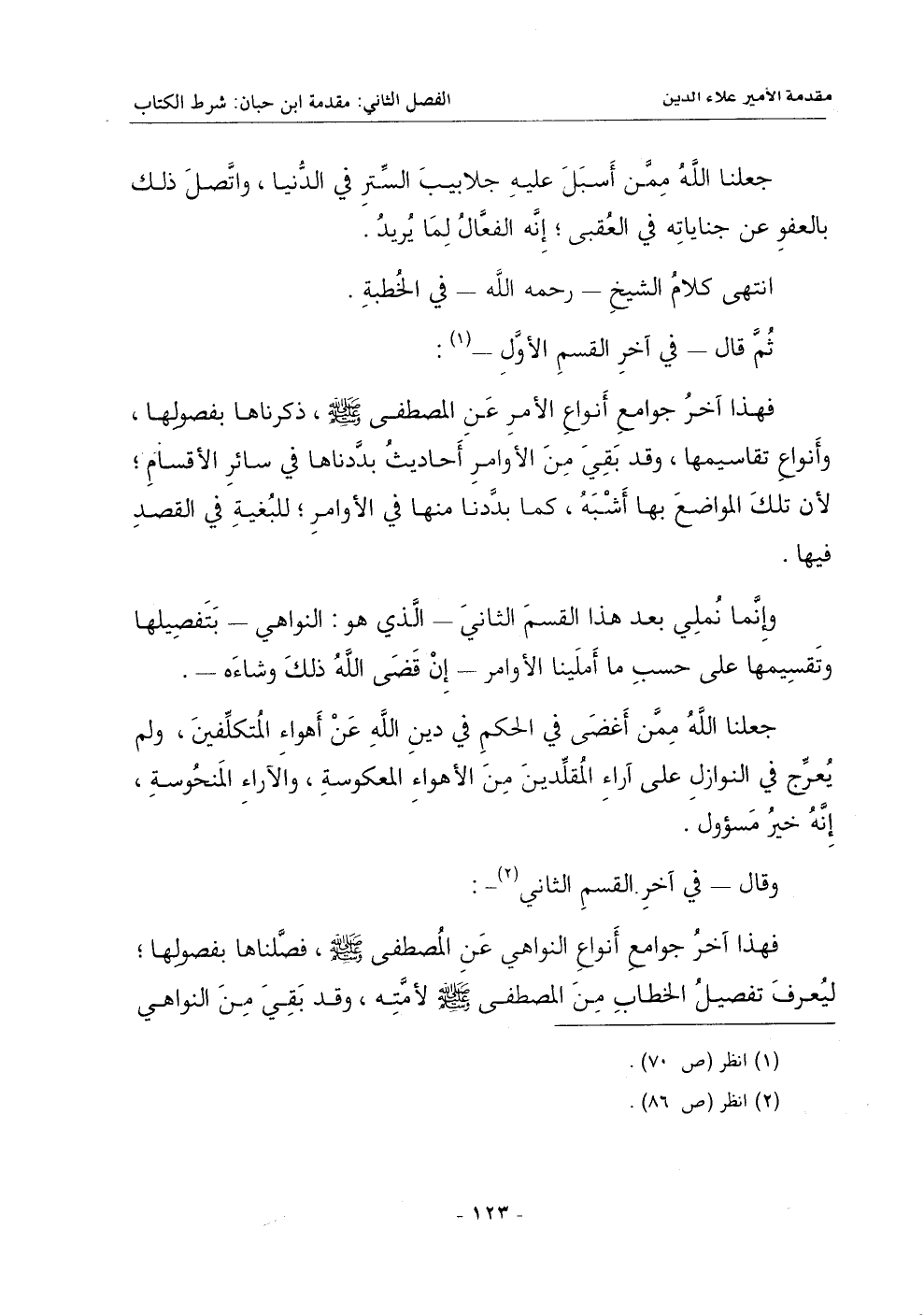 ثم قال ـ في آخر القسم الأول ـ (1):