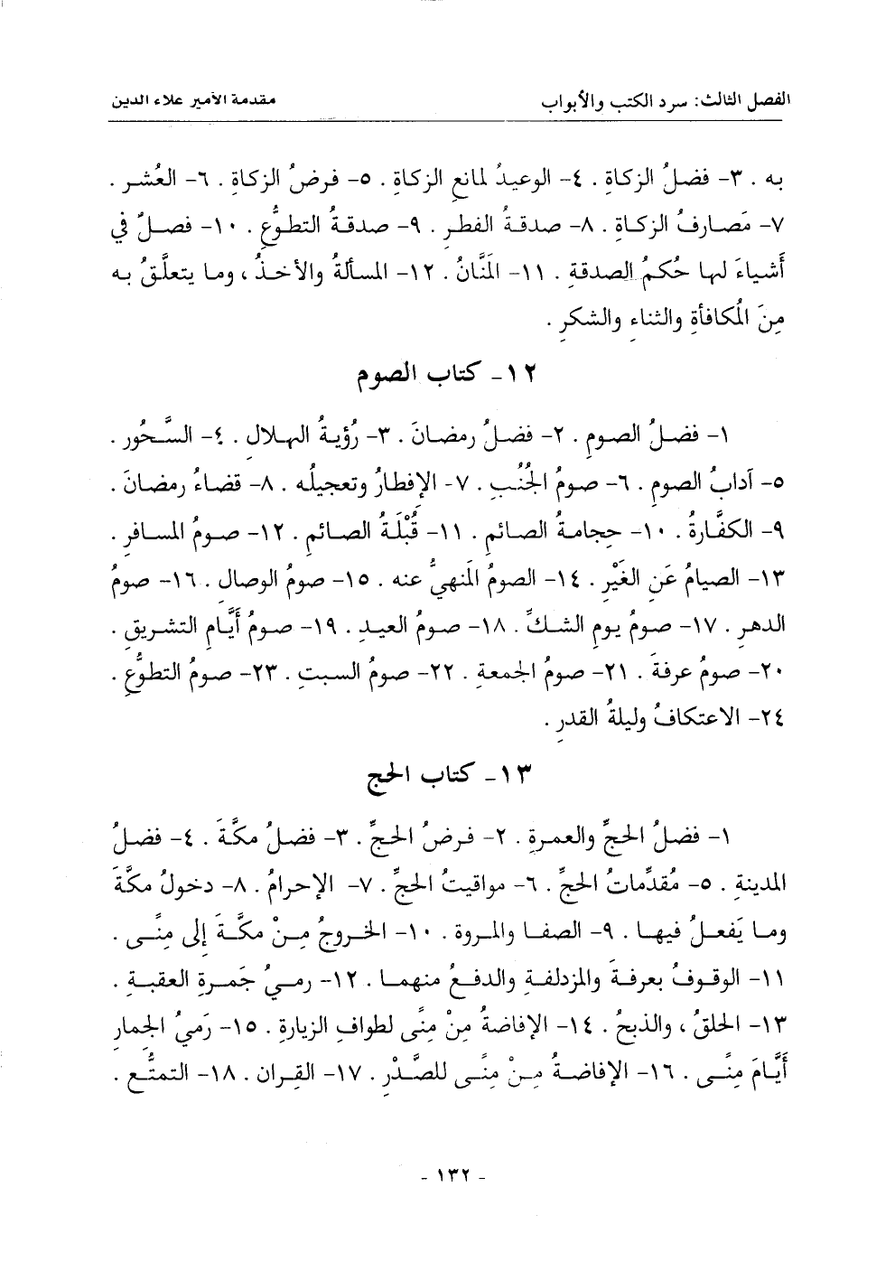 3 ـ فضل الزكاة. 4 ـ الوعيد لمانع الزكاة. 5 ـ فرض الزكاة. 6 ـ العُشر. 7 ـ مصارف الزكاة. 8 ـ صدقة الفطر. 9 ـ صدقة التطوع. 10 ـ فصل في أشياء لها حُكمُ الصدقة. 11 ـ المَنَّانُ. 12 ـ المسألة والأخذ , وما يتعلق به من المكافأة والثناء والشكر.