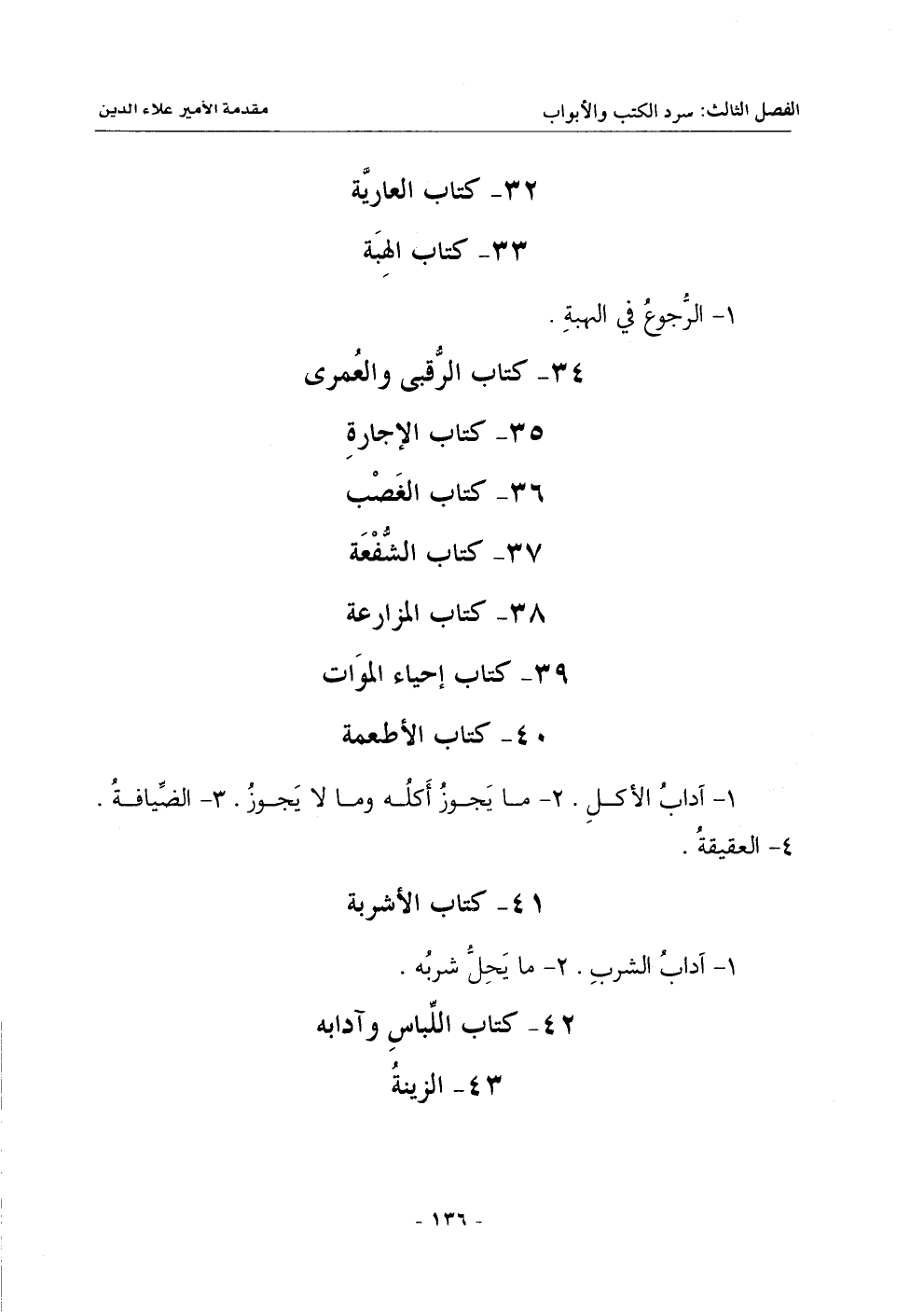 1 ـ آداب الأكل. 2 ـ ما يجوز أكله وما لا يجوز. 3 ـ الضيافة. 4 ـ العقيقةُ.