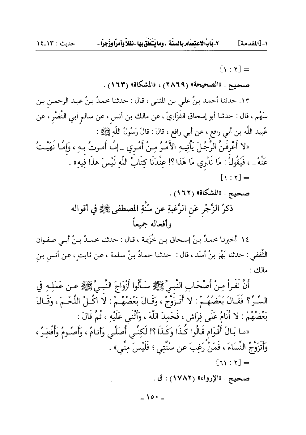 ذِكْرُ الزَّجْرِ عَنِ الرَّغْبَةِ عَنْ سُنَّةِ الْمُصْطَفَى صَلَّى اللَّهُ عَلَيْهِ وَسَلَّمَ فِي أَقْوَالِهِ وَأَفْعَالِهِ جميعاً