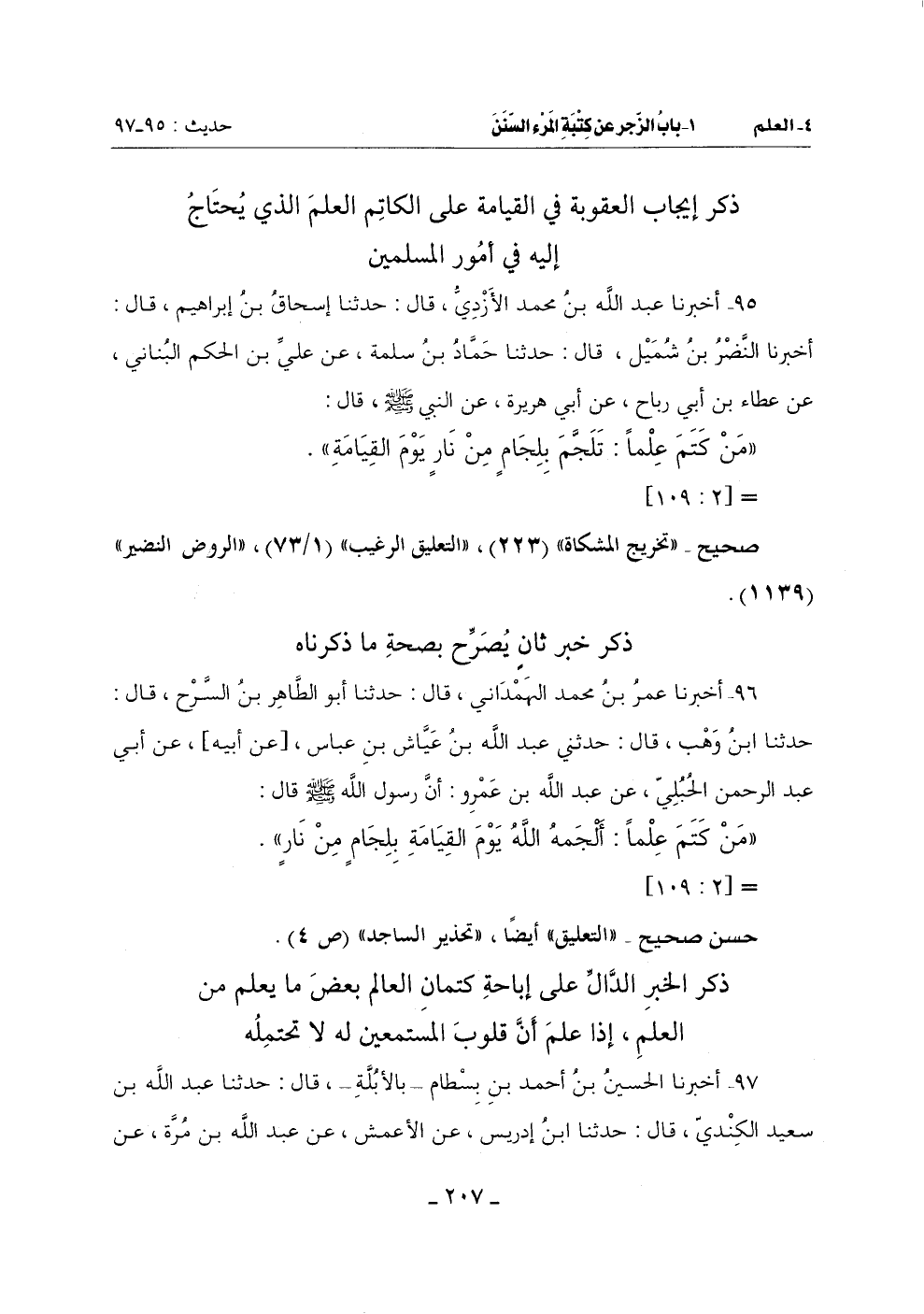 ذِكْرُ إِيجَابِ الْعُقُوبَةِ فِي الْقِيَامَةِ عَلَى الْكَاتِمِ الْعِلْمَ الَّذِي يُحتاج إِلَيْهِ فِي أُمُورِ الْمُسْلِمِينَ