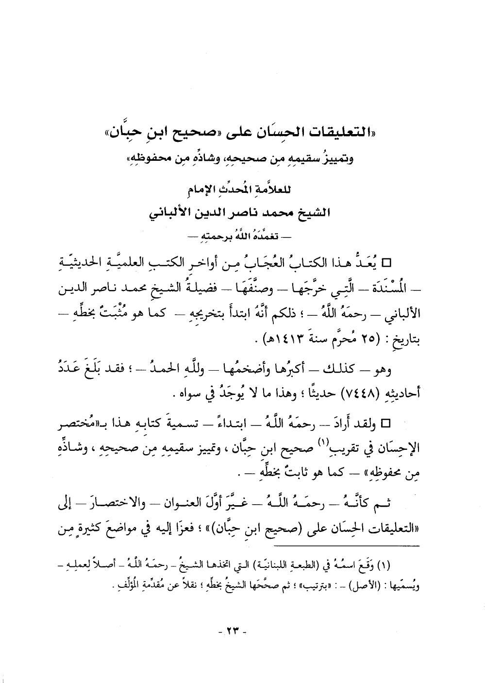 كتاب التعليقات الحسان على صحيح ابن حبان (اسم الجزء: 1)