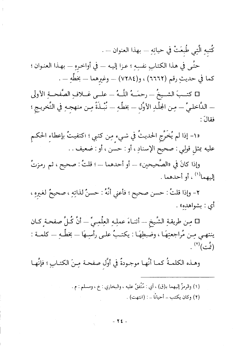 ((1ـ إذا لم يُخَرَّجِ الحديث في شيء من كتبي؛ اكتفيت بإعطاء الحكم عليه بمثل قولي: صحيح الإسناد، أو: حسن، أو: ضعيف. .