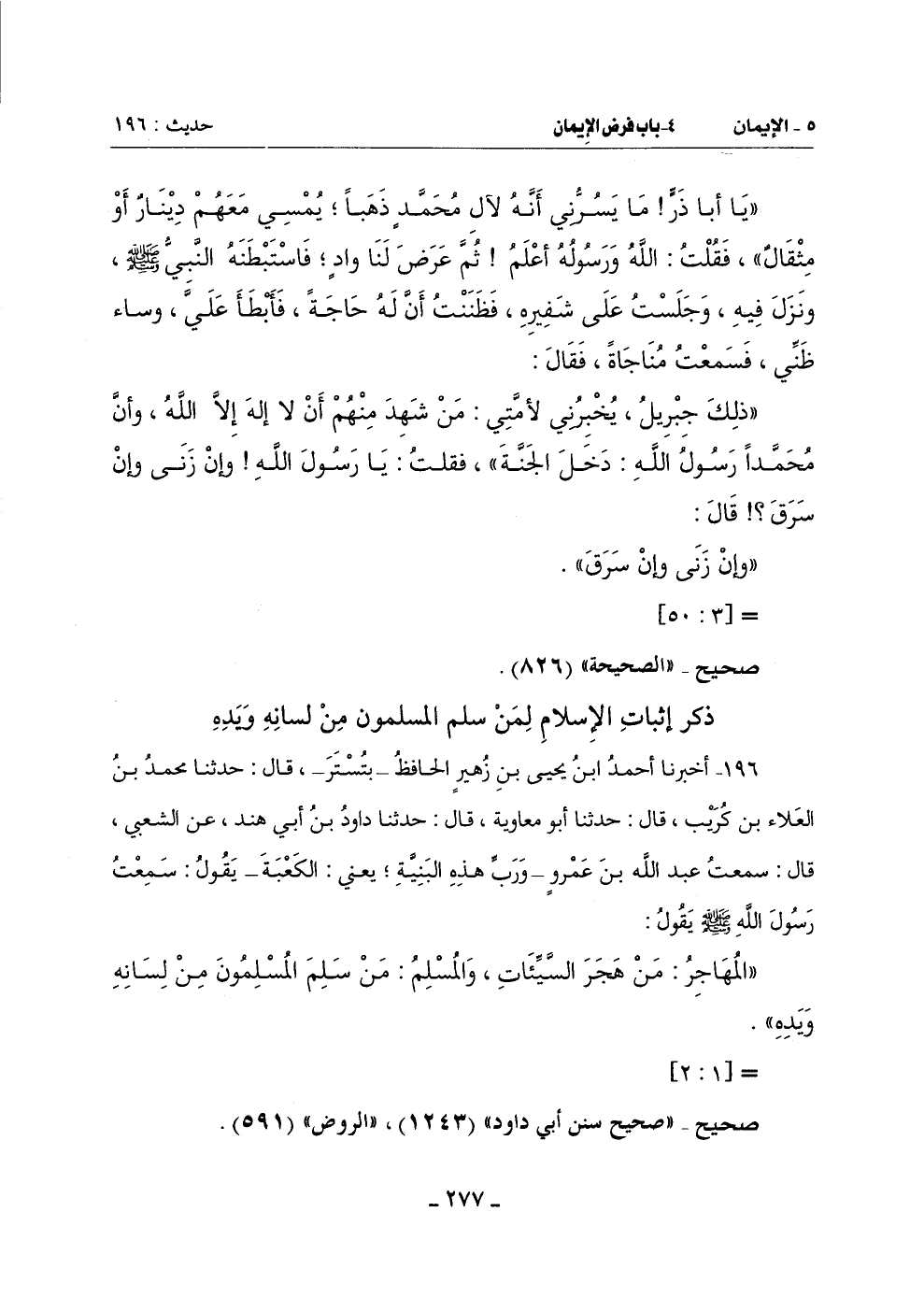 ذِكْرُ إِثْبَاتِ الْإِسْلَامِ لِمَنْ سَلِمَ الْمُسْلِمُونَ مِنْ لسانه ويده