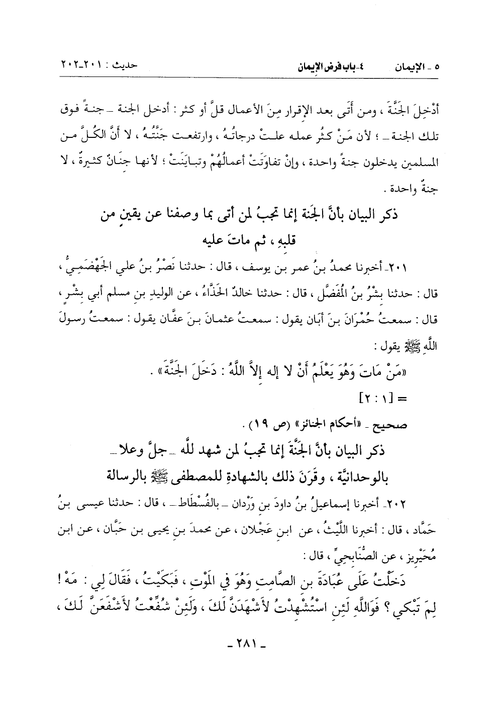 201 - أَخْبَرَنَا مُحَمَّدُ بْنُ عُمَرَ بْنِ يُوسُفَ قَالَ: حدثنا نصر بن علي الحهضمي قال: حدثنا بشر بن الفضل قَالَ: حَدَّثَنَا خَالِدٌ الْحَذَّاءُ عَنِ الْوَلِيدِ بْنِ مُسْلِمٍ أَبِي بِشْرٍ قَالَ: سَمِعْتُ حُمْرَانَ بْنَ أَبَانَ يَقُولُ: سَمِعْتُ عُثْمَانَ بْنَ عَفَّانَ يَقُولُ: سَمِعْتُ رَسُولَ اللَّهِ صَلَّى اللَّهُ عَلَيْهِ وسلم يَقُولُ: