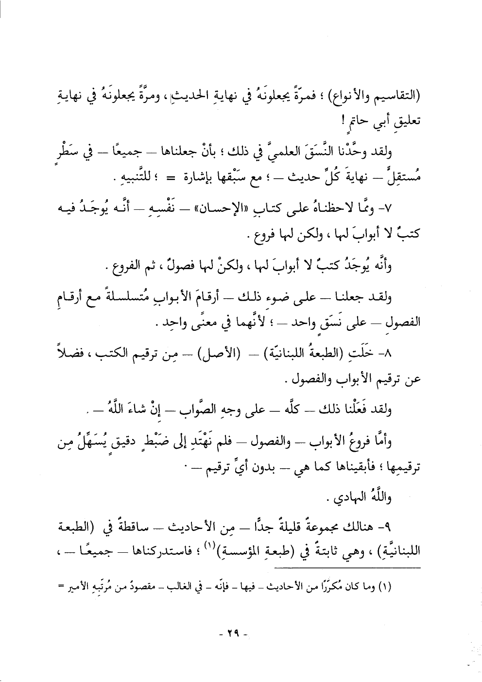 8 ـ خلت (الطبعة اللبنانية) ـ (الأصل) ـ من ترقيم الكتب، فضلاً عن ترقيم الأبواب ـ والفصول.