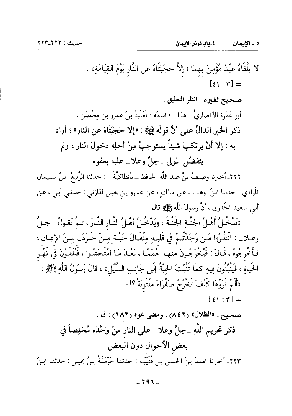 (إِنَّ اللَّهَ جَلَّ وَعَلَا حرَّم عَلَى النَّارِ مَنْ قَالَ: لَا إِلَهَ إِلَّا اللَّهُ يَبْتَغِي بِهِ وَجْهَ اللَّهِ) -[298]-