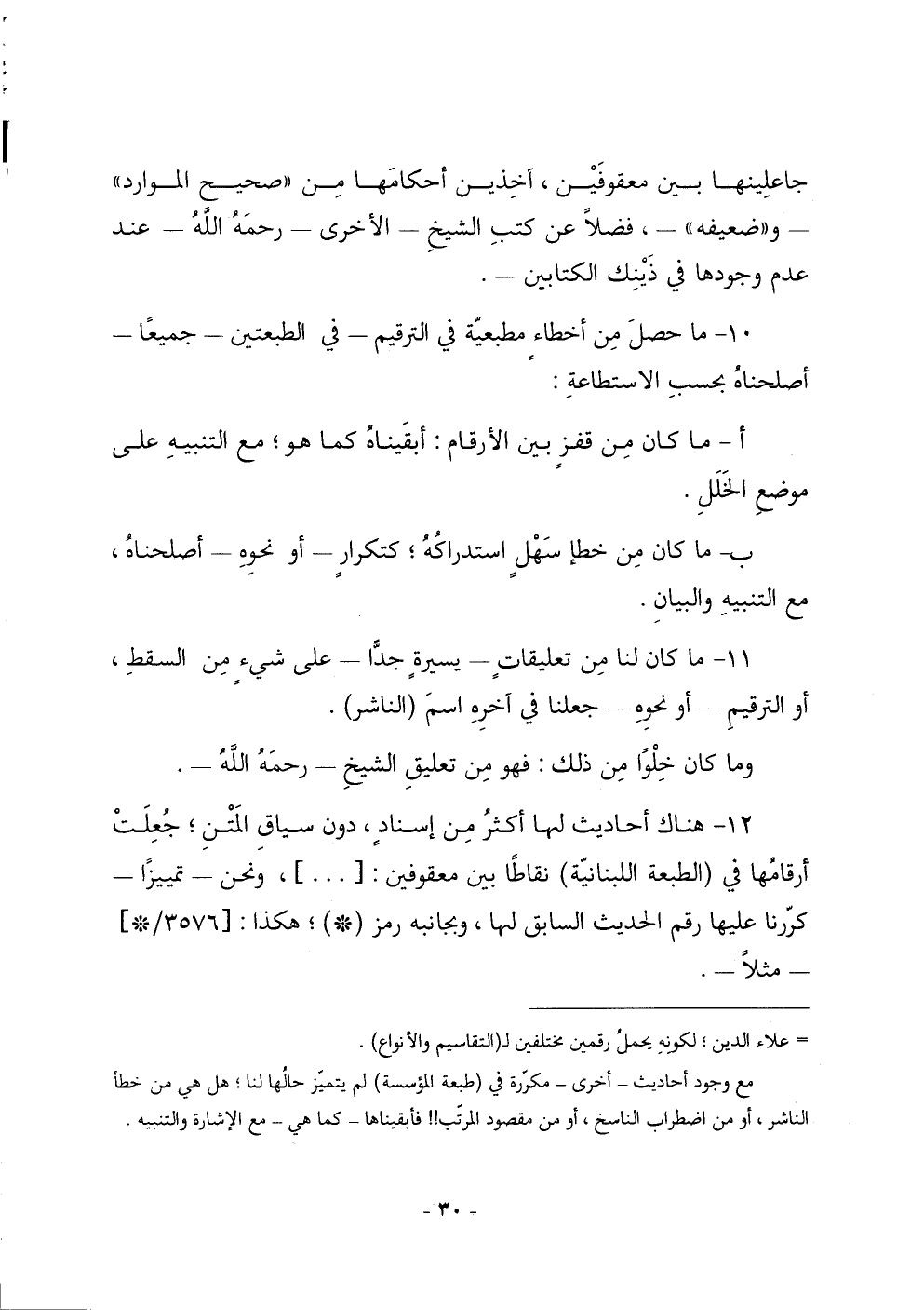 10 ـ ما حصل من أخطاء مطبعية في الترقيم ـ في الطبعتين ـ جميعاً ـ أصلحناه بحسب الاستطاعة: