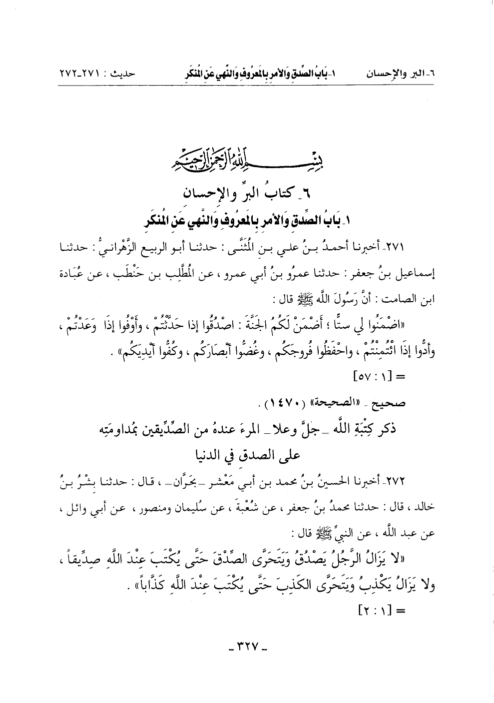 1 - بَابُ الصِّدْقِ وَالْأَمْرِ بِالْمَعْرُوفِ وَالنَّهْيِ عَنِ الْمُنْكَرِ