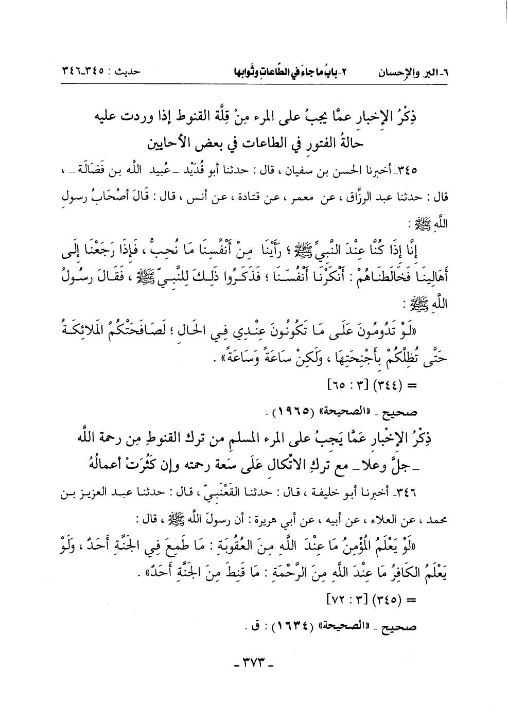 ذِكْرُ الْإِخْبَارِ عَمَّا يَجِبُ عَلَى الْمَرْءِ مِنَ قِلَّةِ الْقُنُوطِ إِذَا وَرَدَتْ عَلَيْهِ حَالَةُ الْفُتُورِ فِي الطَّاعَاتِ فِي بَعْضِ الْأَحَايِينِ