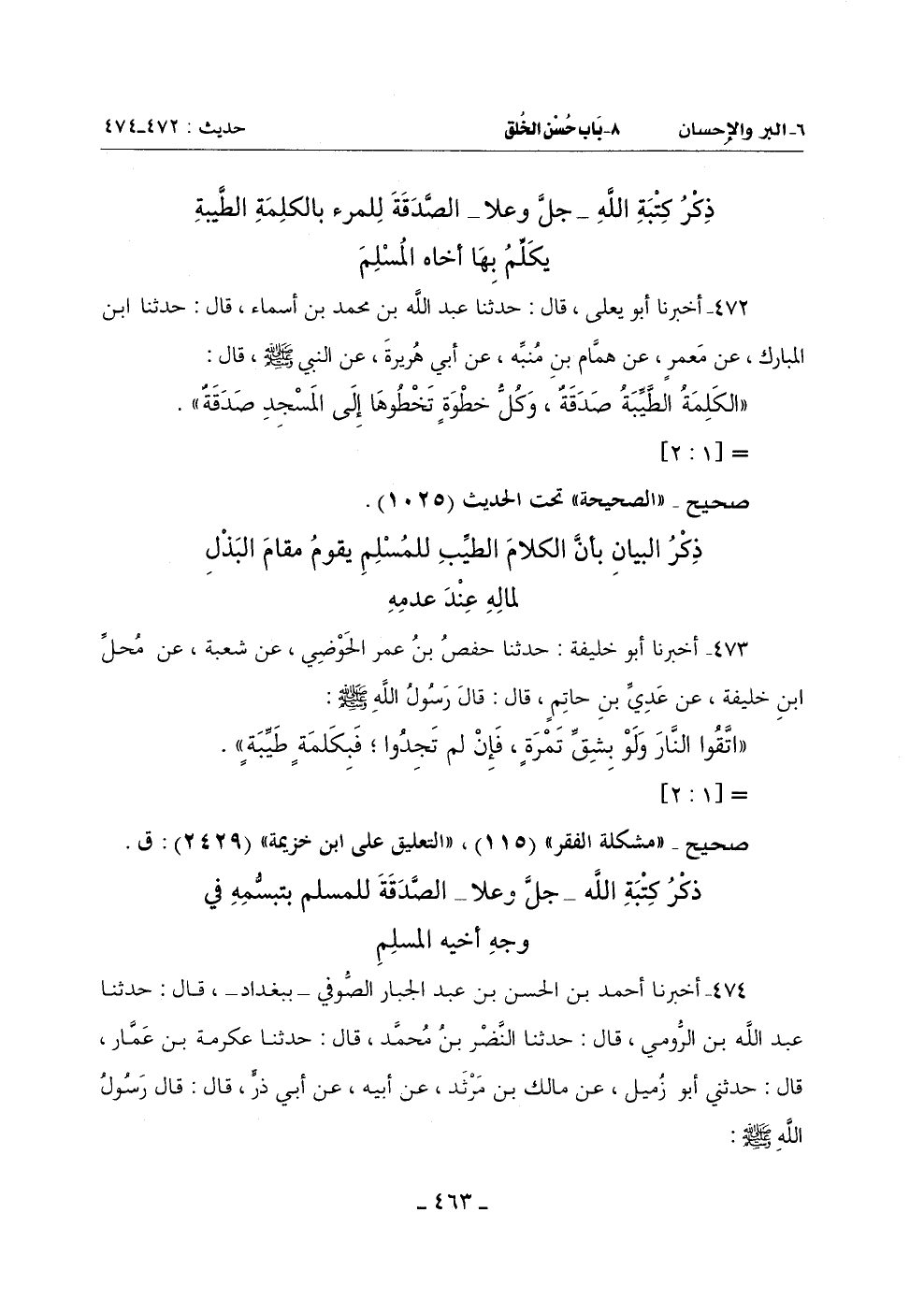 Qصحيح - ((مشكلة الفقر)) (115) , ((التعليق على ابن خزيمة)) (2429): ق.