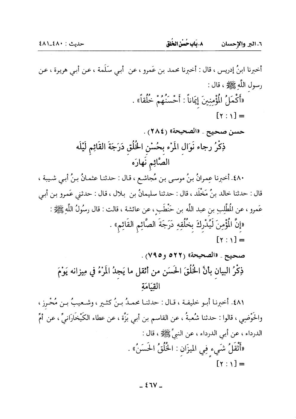 ذِكرُ الْبَيَانِ بِأَنَّ الْخُلُقَ الْحَسَنَ مِنْ أثقِل مَا يجِدُ الْمَرْءُ فِي مِيزَانِهِ يَوْمَ الْقِيَامَةِ