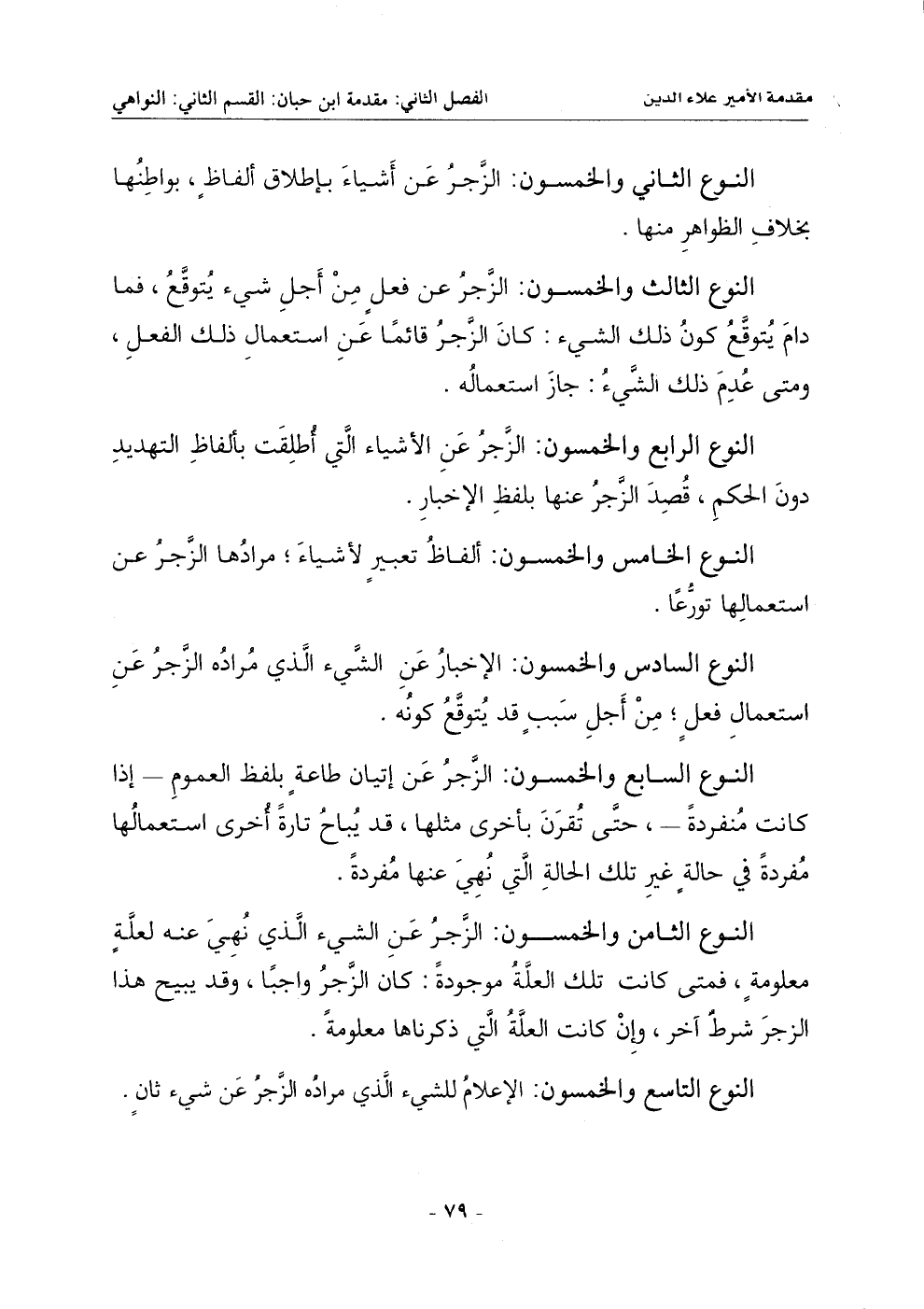 النوع الثامن والخمسون: الزجر عن الشيء الذي نُهِيَ عنه لعلة معلومة فمتى كانت تلك العلة موجودة كان الزجر واجباً وقد يبيح هذا الزجر شرط آخر وإن كانت العلة التي ذكرناها معلومة.