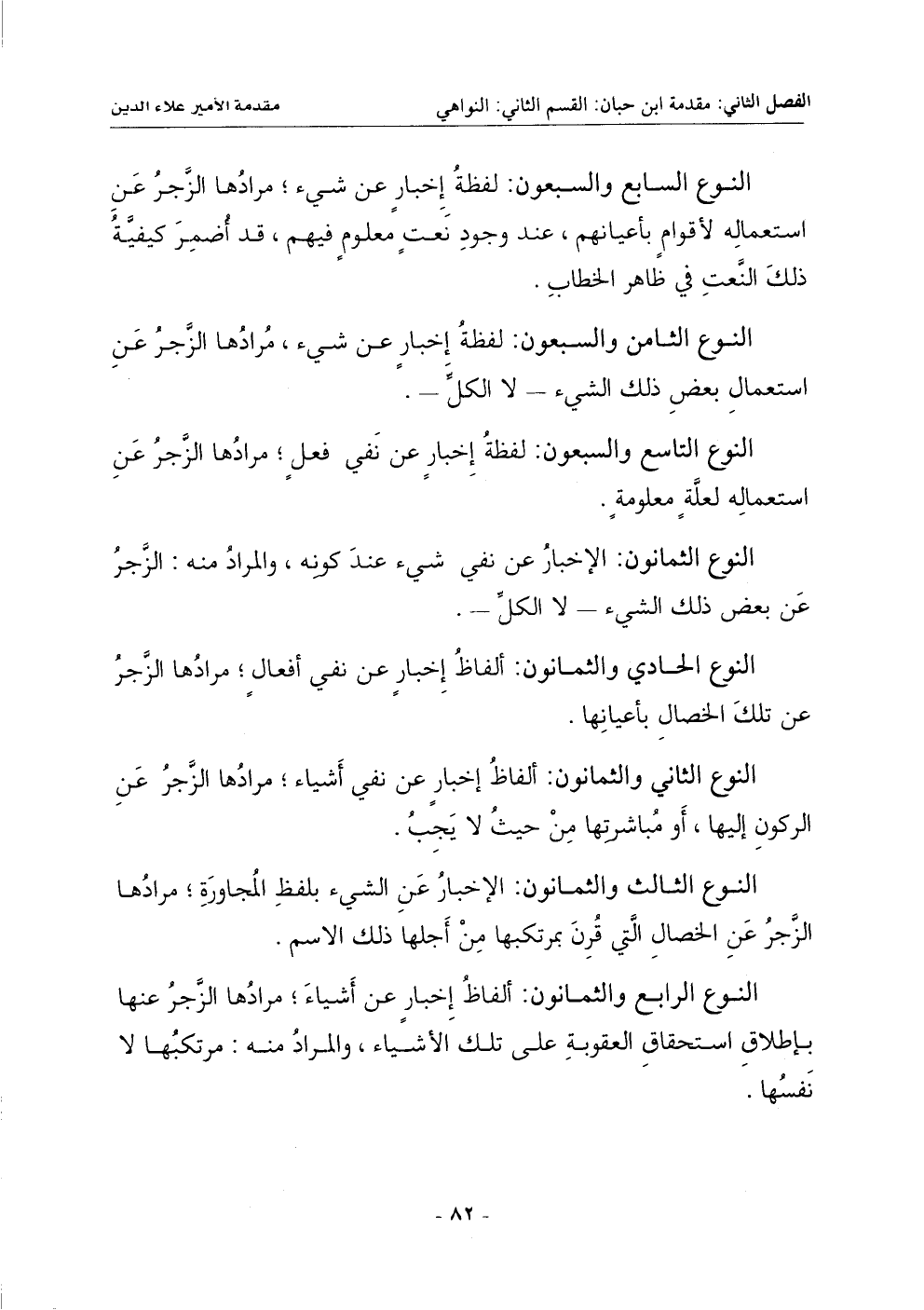 النوع التاسع والسبعون: لفظة عن نفي فعل مرادها الزجر عن استعماله لعلة معلومة.