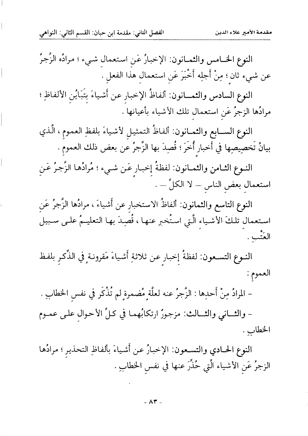 النوع الثامن والثمانون: لفظة إخبار عن شيء مرادها الزجر عن استعمال بعض الناس ـ لا الكل ـ.