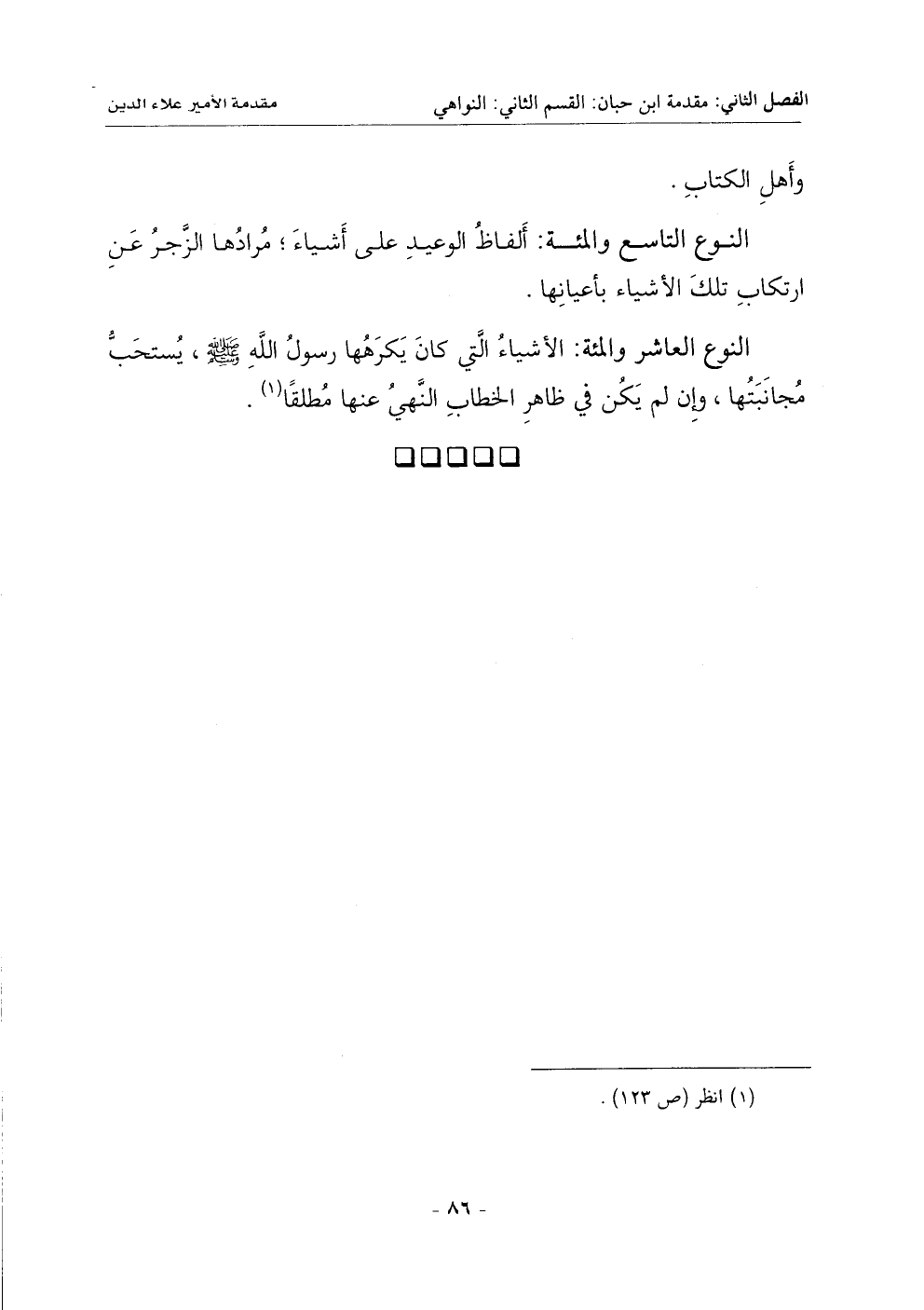 النوع العاشر والمئة: الأشياء التي كان يكرهها رسول الله - صلى الله عليه وسلم - , يُستحَبُّ مجانبتها , وإن لم يكن في ظاهر الخطاب النَّهي عنها مُطلقاً (1).