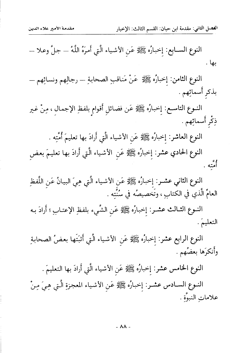 النوع العاشر: إخباره صلى الله عليه وسلم عن الأشياء التي أراد بها تعليم أمته.