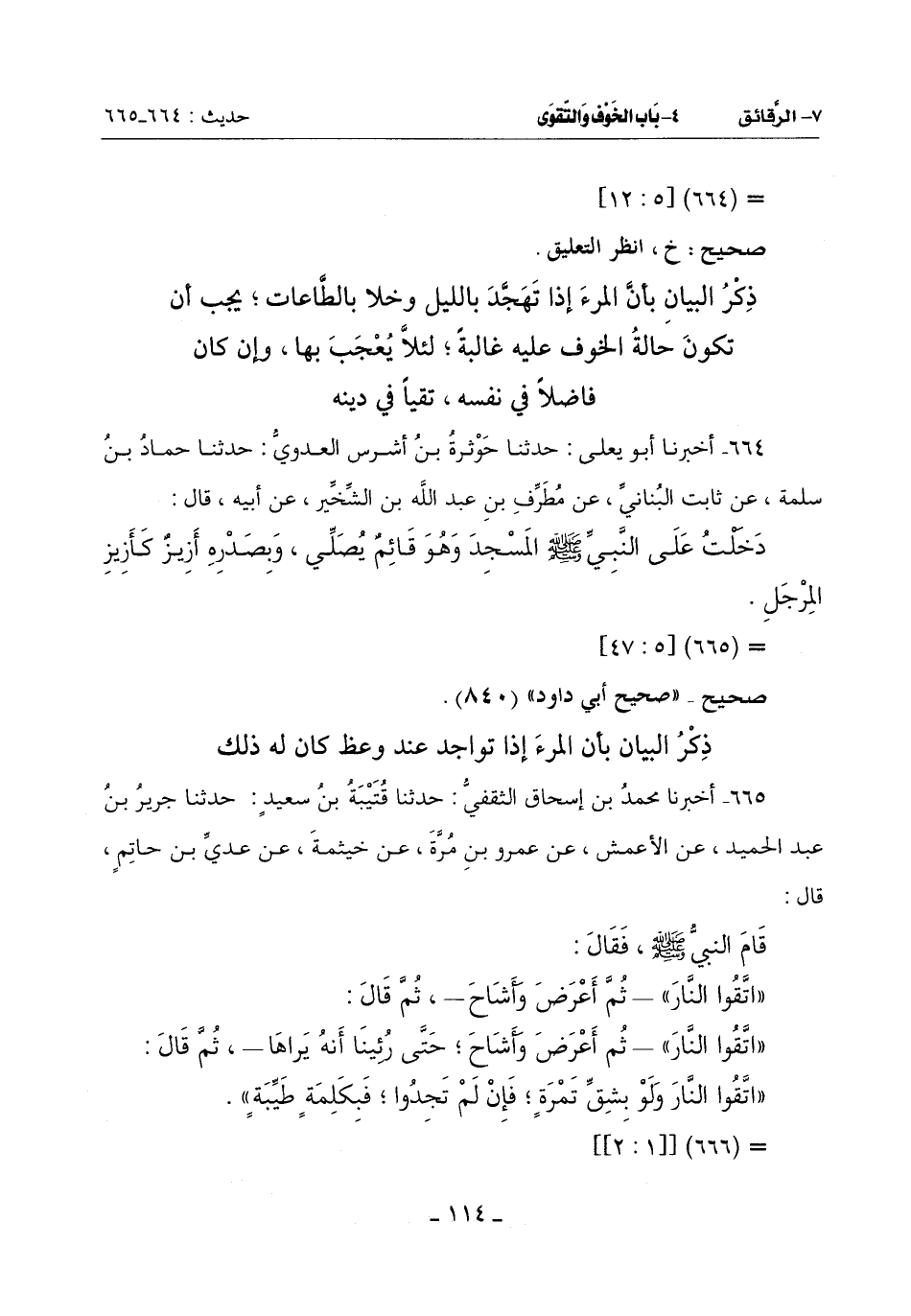 665 - أَخْبَرَنَا مُحَمَّدُ بْنُ إِسْحَاقَ الثَّقَفِيُّ حَدَّثَنَا قُتَيْبَةُ بْنُ سَعِيدٍ حَدَّثَنَا جَرِيرُ بْنُ عَبْدِ الْحَمِيدِ عَنِ الْأَعْمَشِ عَنْ عَمْرِو بْنِ مُرَّةَ عَنْ خَيْثَمَةَ عَنْ عَدِيِّ بْنِ حَاتِمٍ قَالَ: