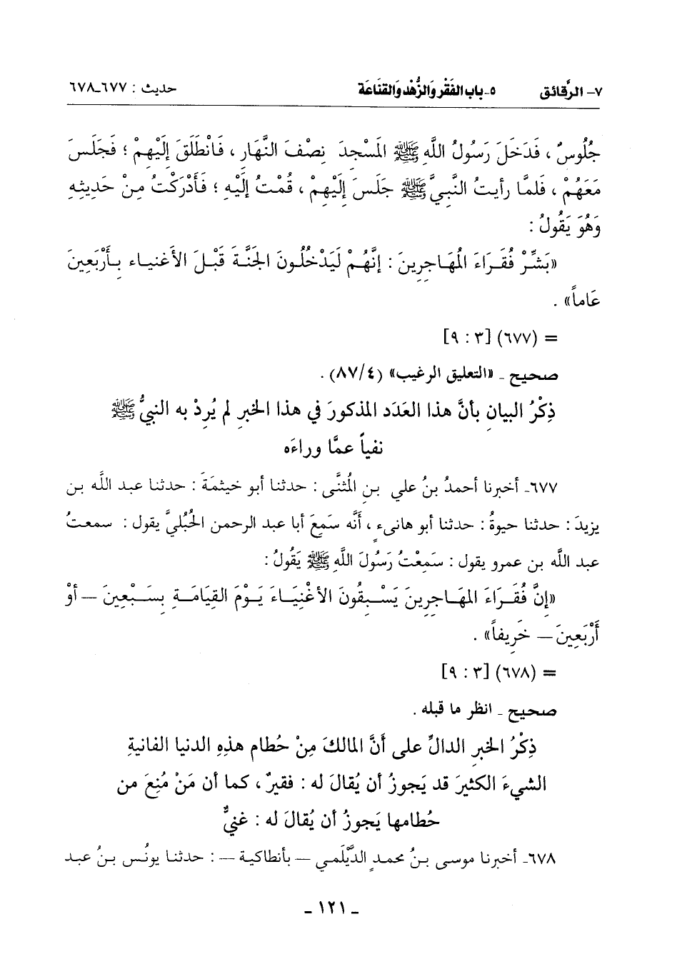 (إِنَّ فُقَرَاءَ الْمُهَاجِرِينَ يَسْبِقُونَ الْأَغْنِيَاءَ يَوْمَ الْقِيَامَةِ بِسَبْعِينَ أَوْ أربعين خريفاً)