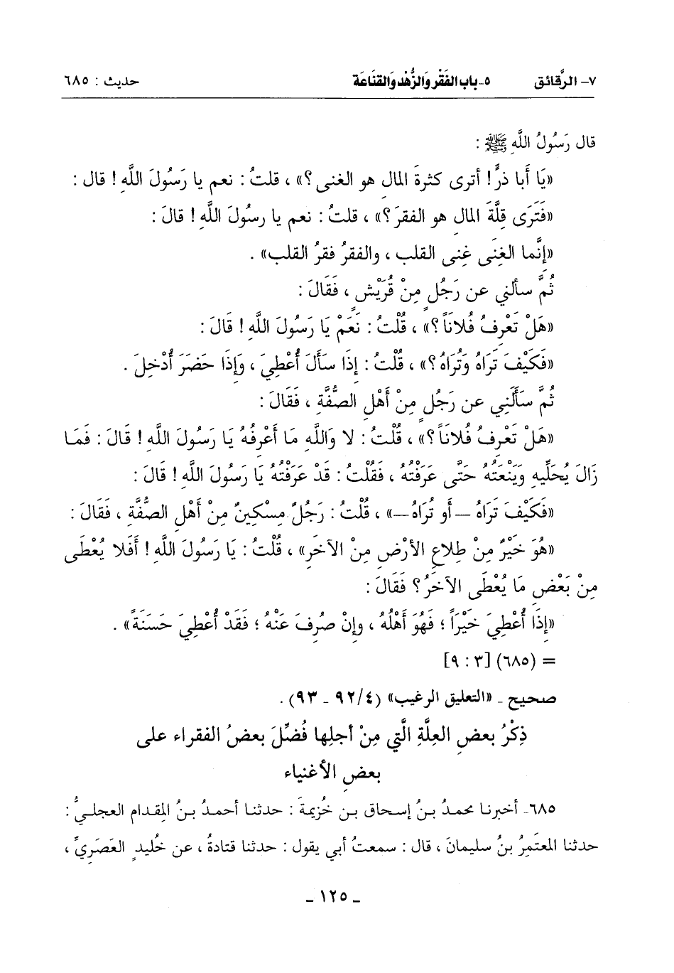 ذِكْرُ بَعْضِ الْعِلَّةِ الَّتِي مِنْ أَجْلِهَا فُضِّلَ بَعْضُ الْفُقَرَاءِ عَلَى بَعْضِ الْأَغْنِيَاءِ