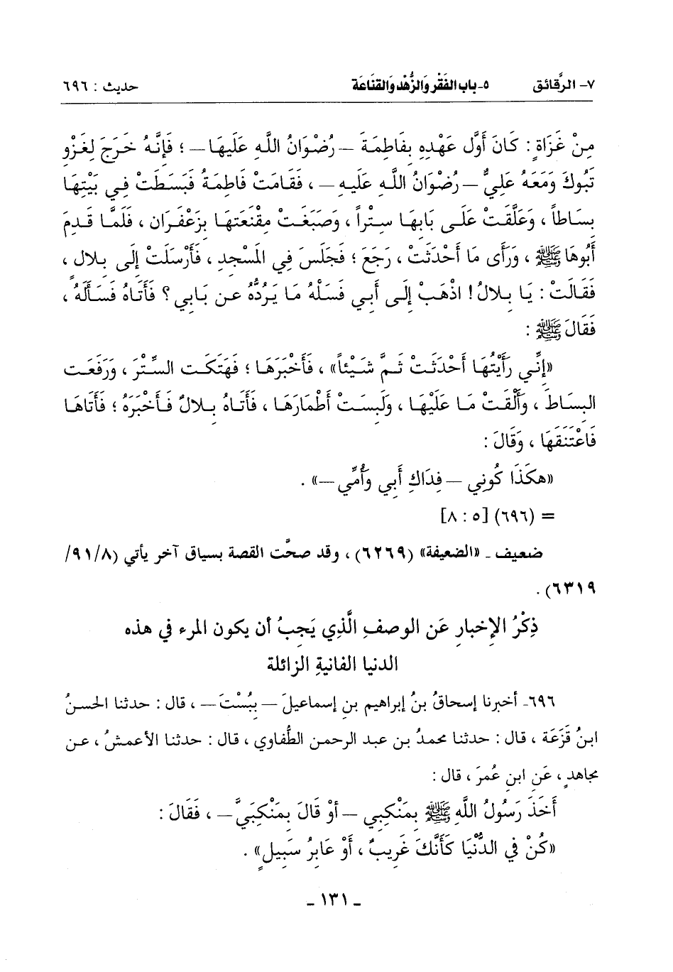 (كُنْ فِي الدُّنْيَا كَأَنَّكَ غَرِيبٌ أَوْ عَابِرُ سَبِيلٍ) -[132]-