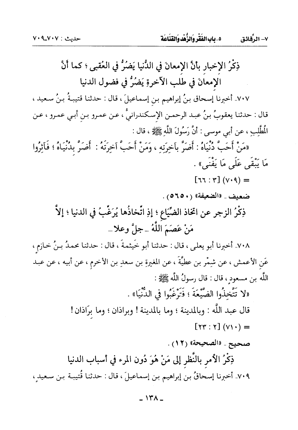 ذِكْرُ الْإِخْبَارِ بِأَنَّ الْإِمْعَانَ فِي الدُّنْيَا يَضُرُّ فِي الْعُقْبَى كَمَا أَنَّ الْإِمْعَانَ فِي طَلَبِ الْآخِرَةِ يَضُرُّ فِي فُضُولِ الدُّنْيَا