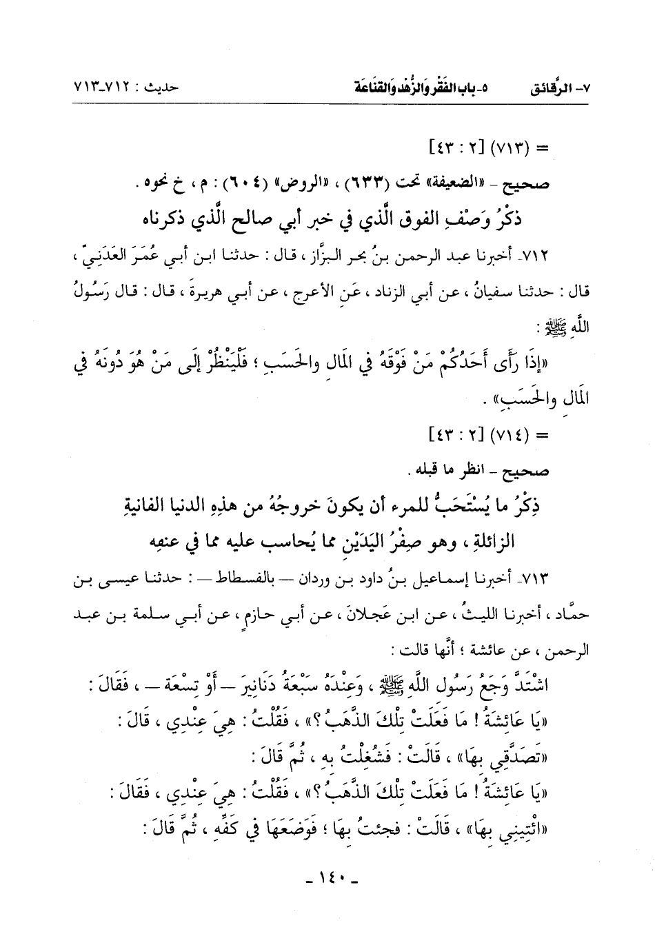 ذِكْرُ مَا يُسْتَحَبُّ لِلْمَرْءِ أَنْ يَكُونَ خُرُوجُهُ مِنْ هَذِهِ الدُّنْيَا الْفَانِيَةِ الزَّائِلَةِ وَهُوَ صِفْرُ الْيَدَيْنِ مِمَّا يُحاسب عَلَيْهِ مِمَّا فِي عُنُقِهِ