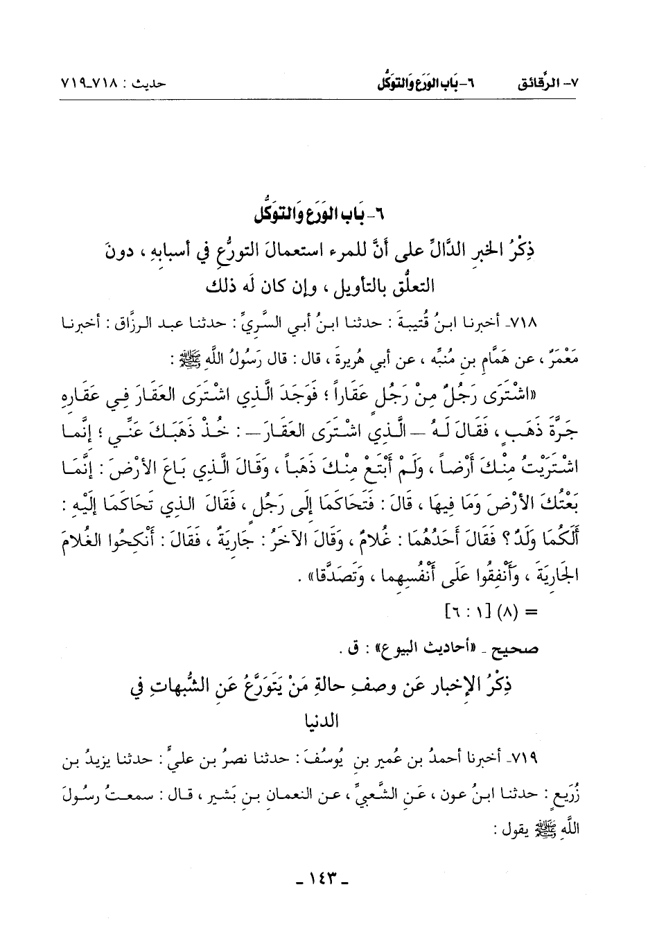 6 - بَابُ الْوَرَعِ وَالتَّوَكُّلِ