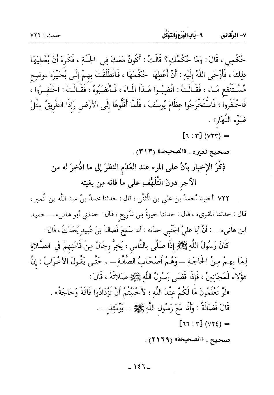 722 - أَخْبَرَنَا أَحْمَدُ بْنُ عَلِيِّ بْنِ الْمُثَنَّى قَالَ: حَدَّثَنَا مُحَمَّدُ بْنُ عَبْدِ اللَّهِ بْنِ نُمَيْرٍ قال: حدثنا المقرىء قَالَ: حَدَّثَنَا حَيْوَةُ بْنُ شُرَيْحٍ قَالَ: حَدَّثَنِي أبو هانىء حميد بن هانىء أَنَّ أَبَا عَلِيٍّ الْجَنْبِيَّ حَدَّثَهُ: أَنَّهُ سَمِعَ فَضَالَةَ بْنَ عُبَيْدٍ يُحَدِّثُ قَالَ: